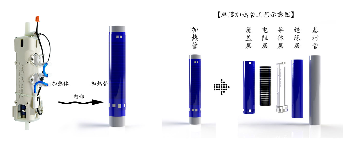 源于歐美的厚膜加熱技術(shù),是采用絲網(wǎng)印刷技術(shù)在基材上印刷絕緣介質(zhì)、電阻、導體、保護釉等材料,通過高溫燒結(jié)而成,九十年代末,美國DUPONT、德國HERAEUS等巨頭公司開發(fā)出全新大功率基板厚膜電熱元件,由于其高強度、高壽命的性能和安全環(huán)保、運用靈活的特點很快在工業(yè)以及家用電熱產(chǎn)品領(lǐng)域普及,被稱為電熱元件領(lǐng)域的工業(yè)革命。